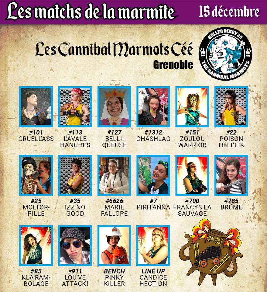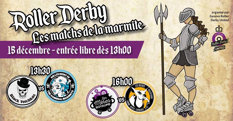 Nous voilà donc deux semaines plus tard pour affronter une nouvelle équipe française ! Le 15 décembre, nous nous rendons donc au Petit-Lancy, invité.e.s par Genève pour les Matches de la Marmite. Deux matches sont prévus: le premier nous voit opposer les Cannibal Marmots de Grenoble, et le deuxième oppose les Biches contre les Mères Royaume.