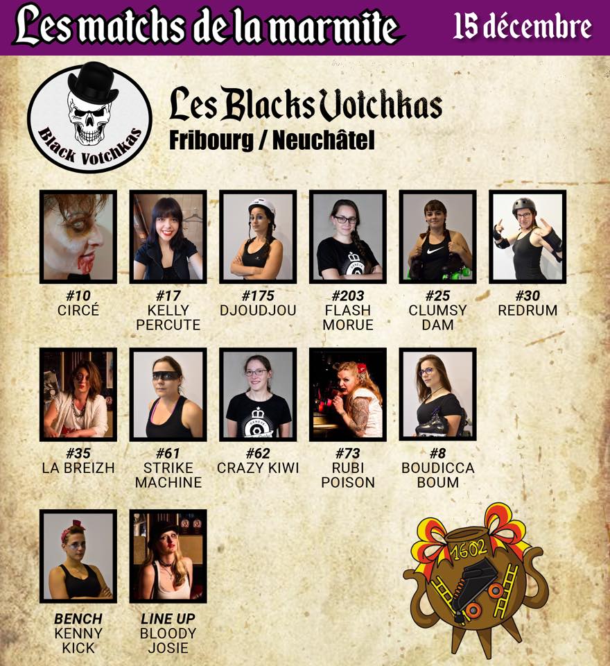 Deux mille dix-huit a été une année chargée pour les Black Witches: recrutements, entraînements théoriques, développement de site web... Mais 2018, c'est surtout l'année qui aura vu un rapprochement historique entre Fribourg et Neuchâtel sous la houlette de Bloody Josie, Strike Machine et Kenny Kick. Grâce à elles sont né.e.s les Black Votchkas, formation mixte, que ce soit en termes de genre ou de canton.