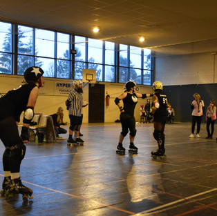 La salle est chaleureuse, le sol est incroyablement parfait (pas trop dur, pas trop mou, glissant comme il faut <3), et les tribunes commencent à se remplir. Contrairement au match à Pontarlier, celui-ci est public, et contre toute attente, loin de nous stresser, la présence du publie s'avère un excellent stimulant ! Les Grenoblois.e.s sont venu.e.s en masse encourager leur équipe, mais nous ne nous laissons pas déconcentrer par les chants et cris de guerre des adversaires ! En infériorité numérique, chaque joueuse des Black Votchkas enchaîne au moins un jam sur 2. L'issue de ce match nous est ici aussi défavorable, même s'il y a eu de belles remontées. Là encore, l'énergie, le dépassement et la ferveur dont les 2 équipes ont fait preuve suffit à nous remonter le moral. Avec encore une fois... l'envie d'en découdre pour la prochaine !